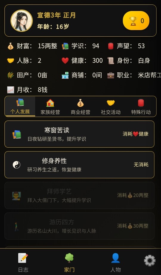 3.玩家可选择仕途、经商或游历江湖。