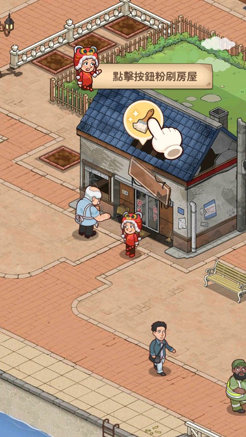 2、根据提示进行操作,首先需要点击按钮为小屋重新粉刷;