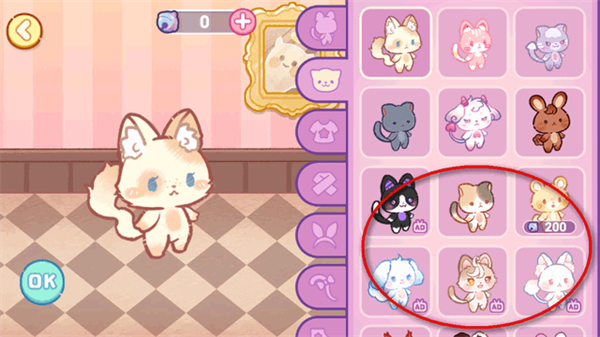 1、各种风格的衣服、裙子、头饰、鞋子等可供使用,打扮你的小猫,为其创造时尚造型。