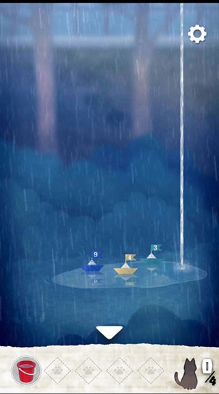 2、在下方界面中,点击获取红色水桶,然后在道具栏中选择水桶,放至滴水处,装满水桶,记住小船的颜色和数字,这在后面会用到